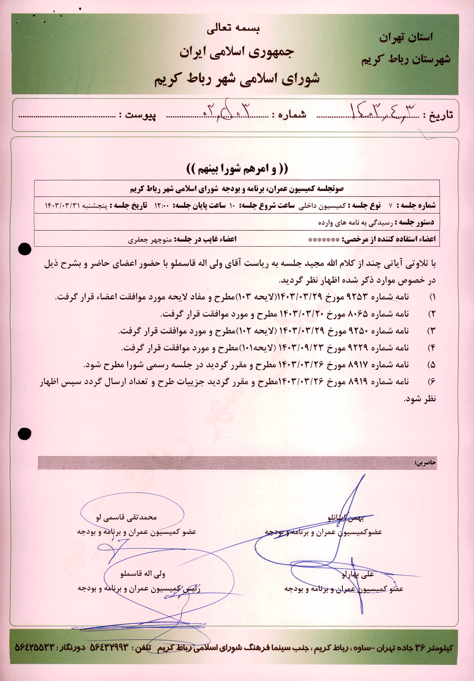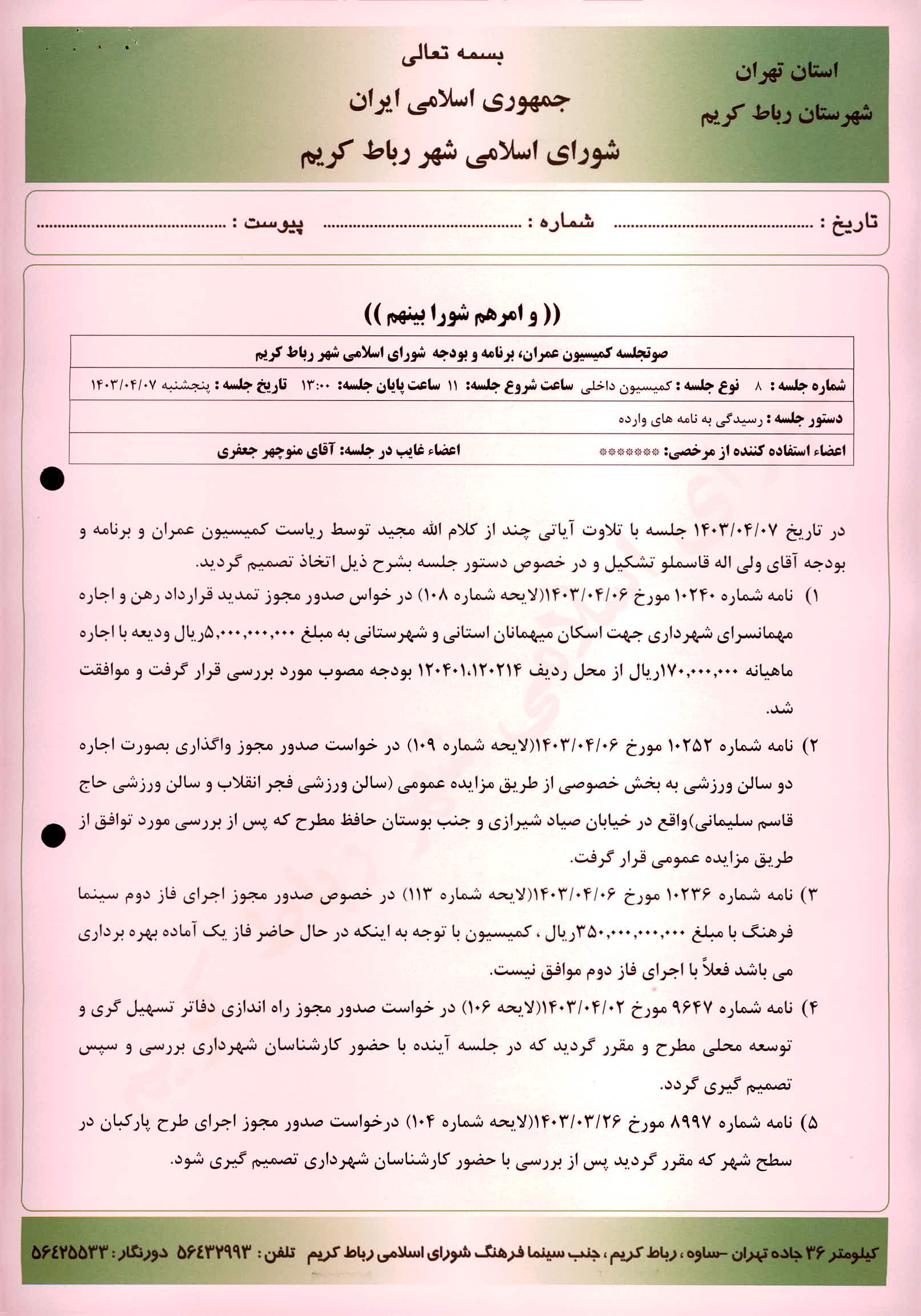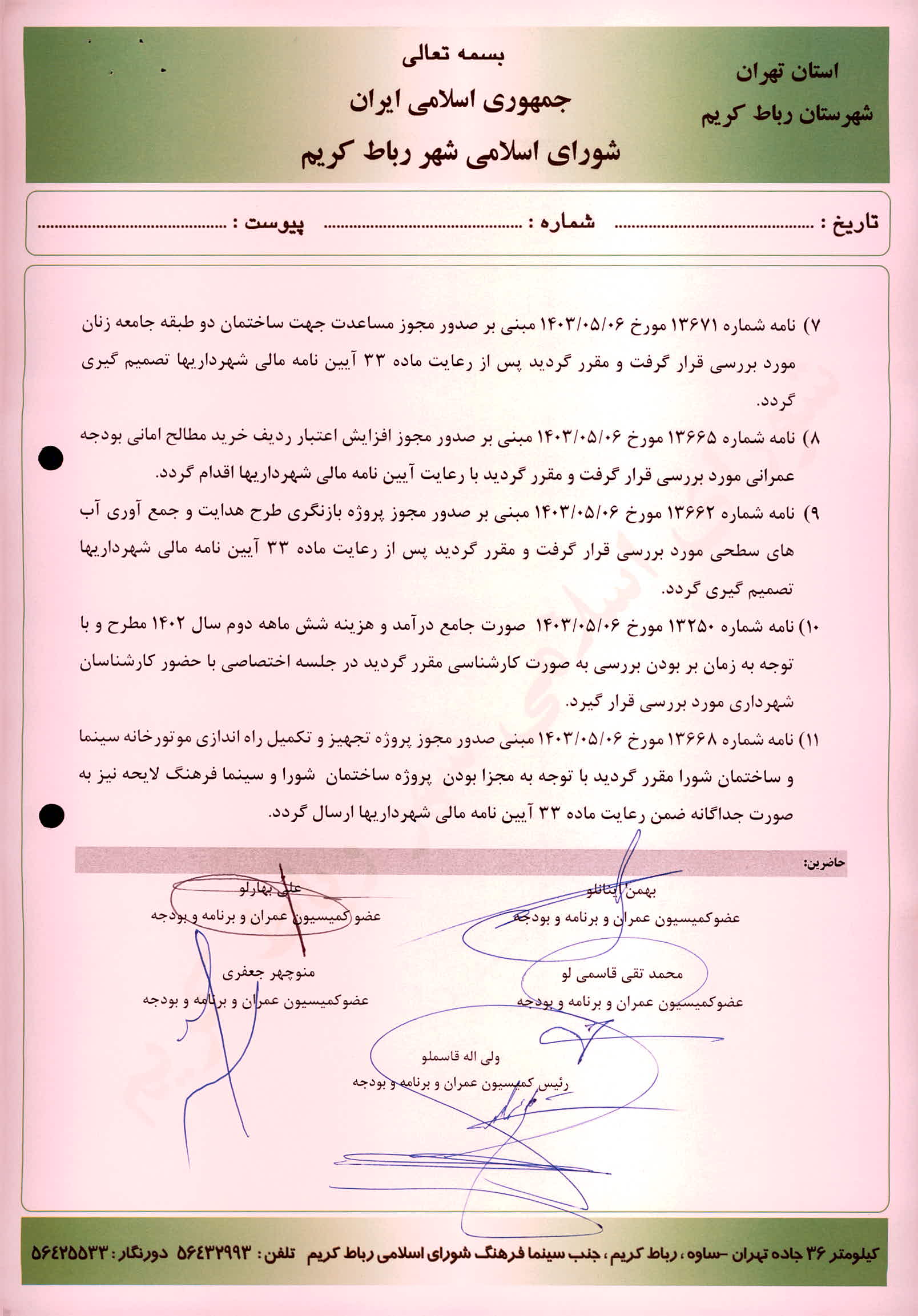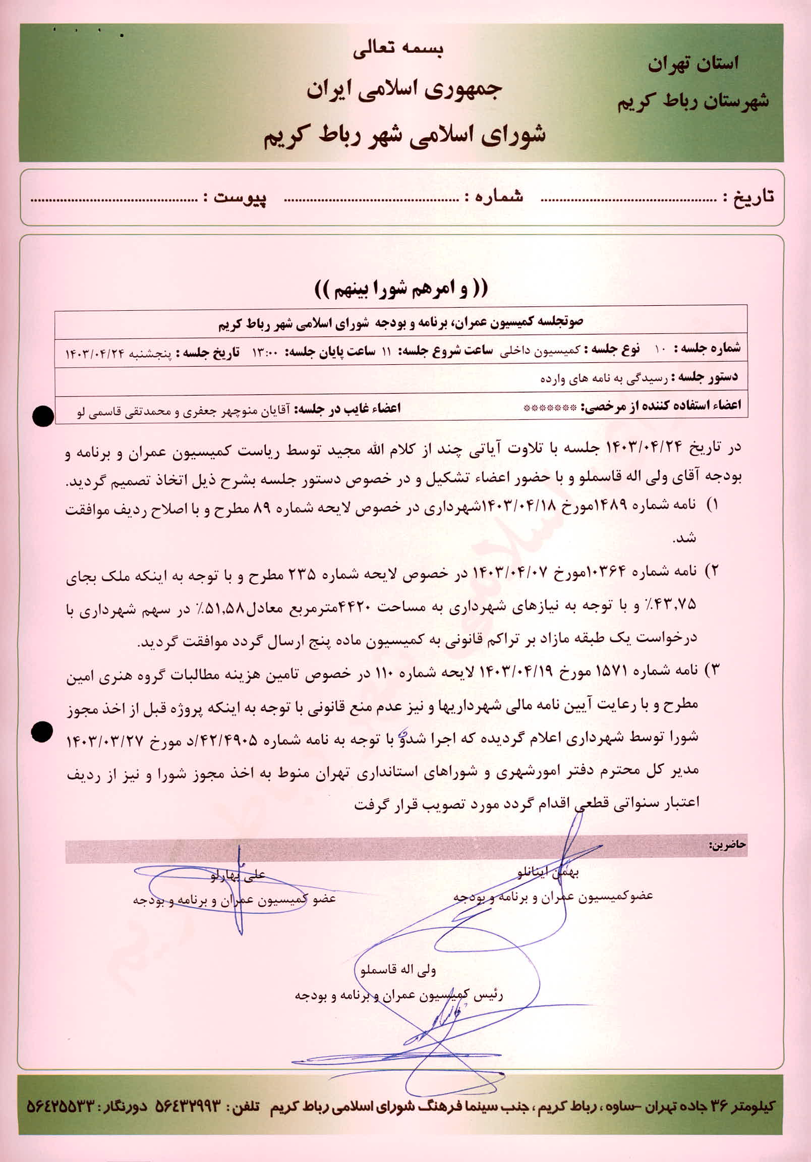 در این جلسه که با حضور مدعوین در خصوص عوارض زیر بنایی و ساختمانی شهرداری به بحث و گفتگو پرداختند.