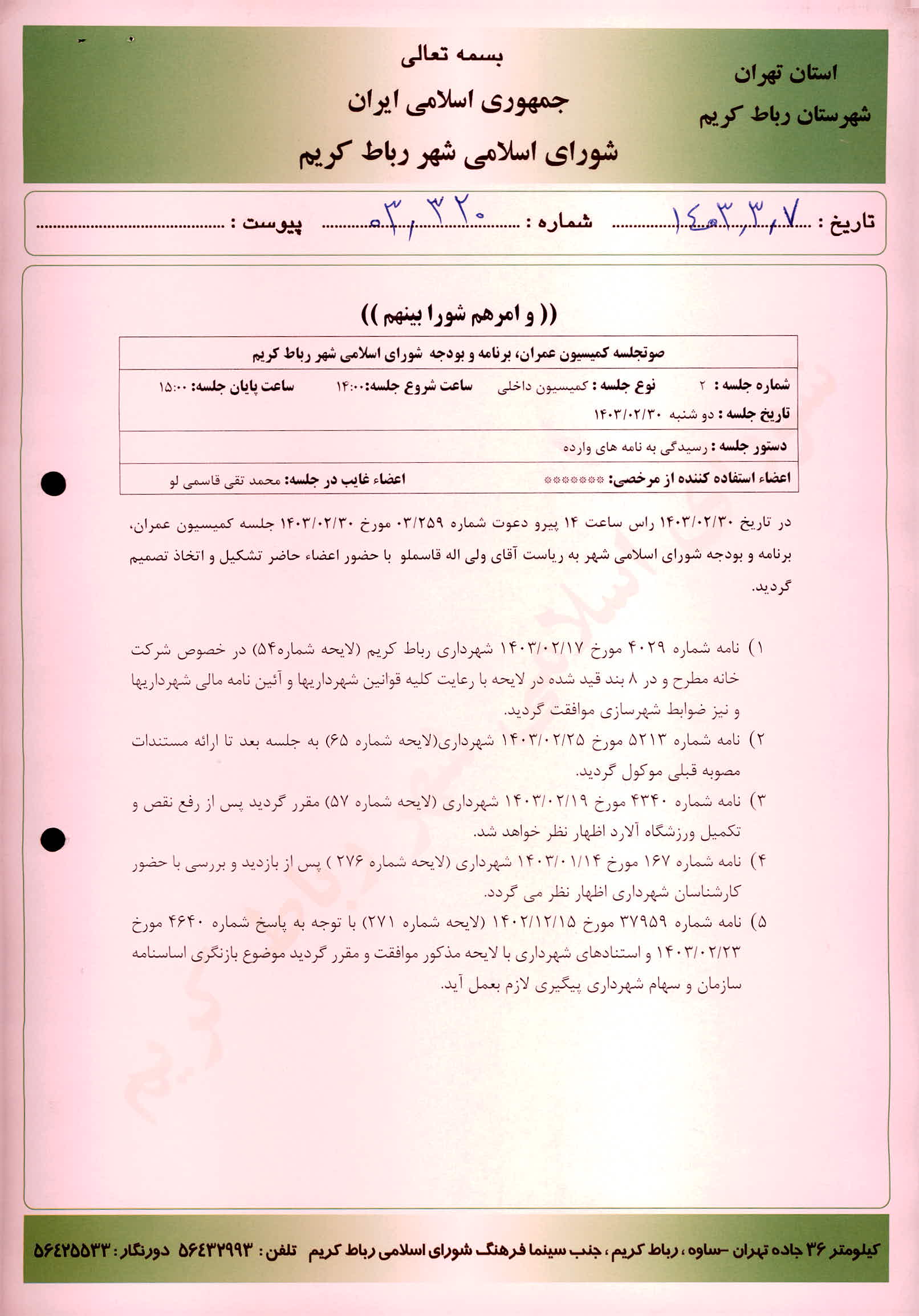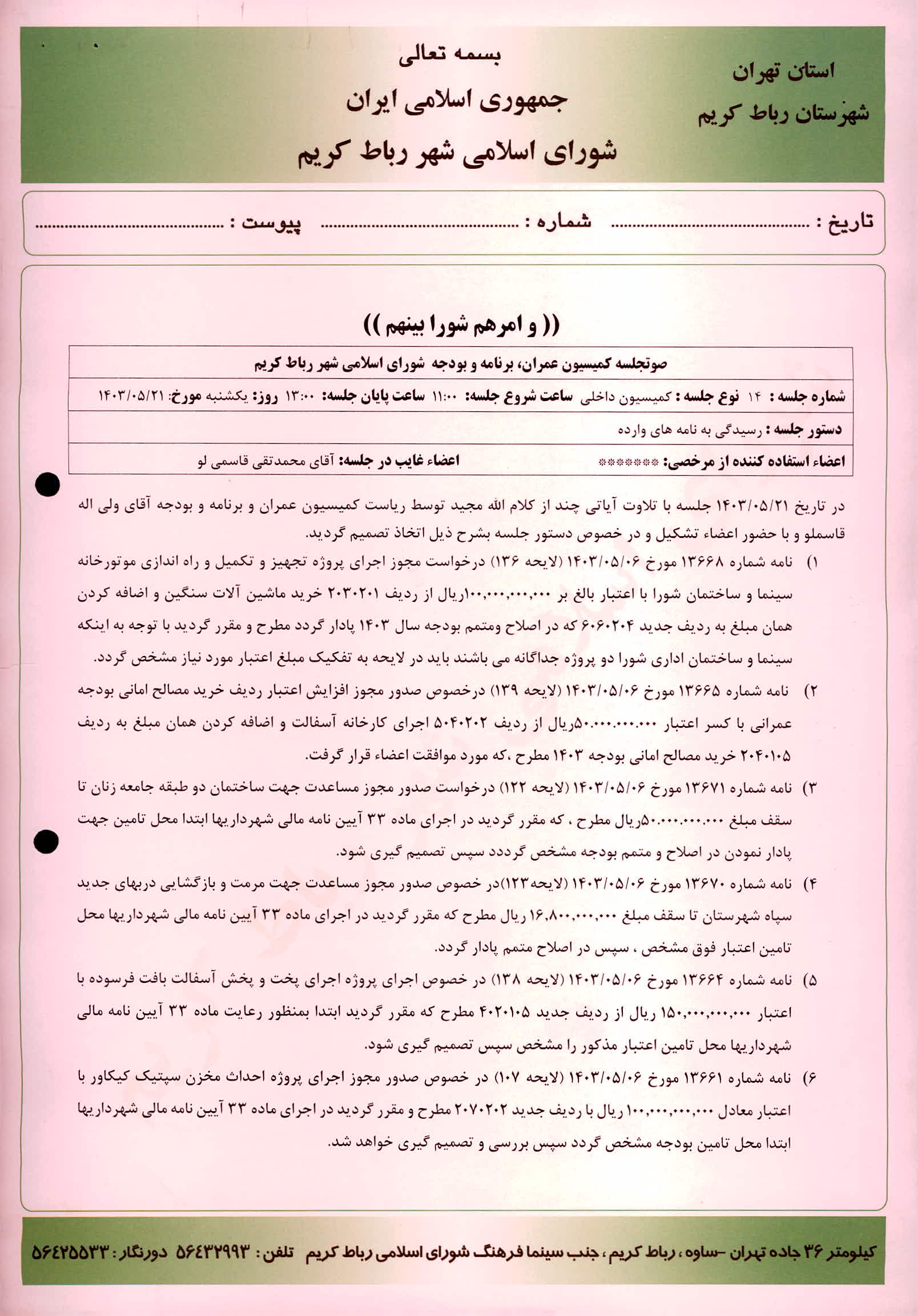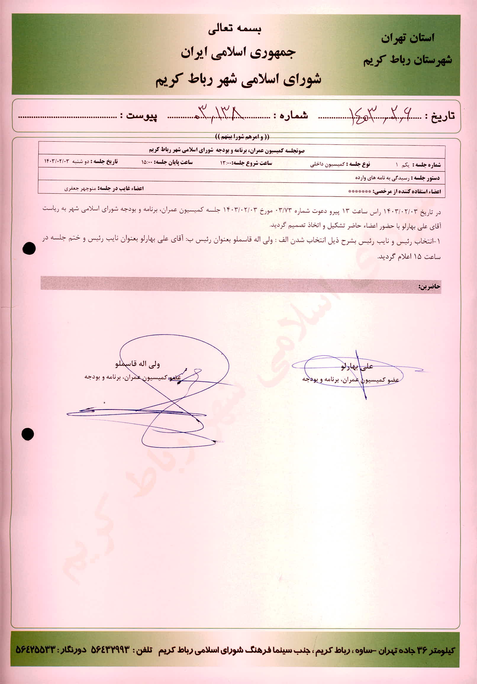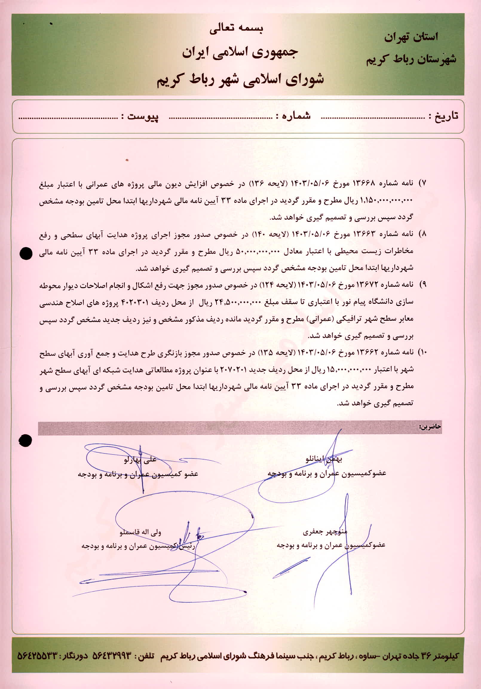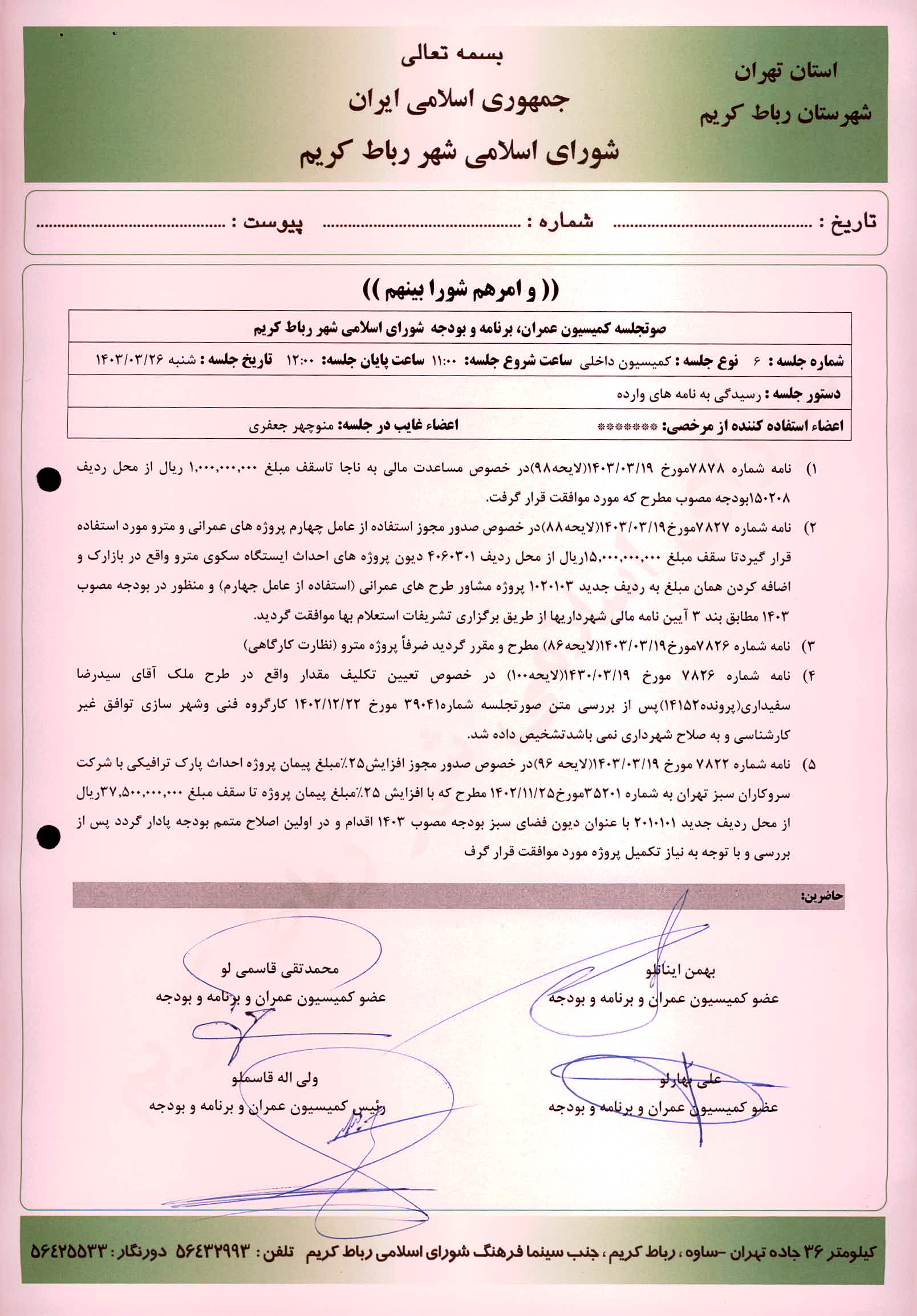 در این جلسه که با حضور مدعوین در خصوص عوارض زیر بنایی و ساختمانی شهرداری به بحث و گفتگو پرداختند.