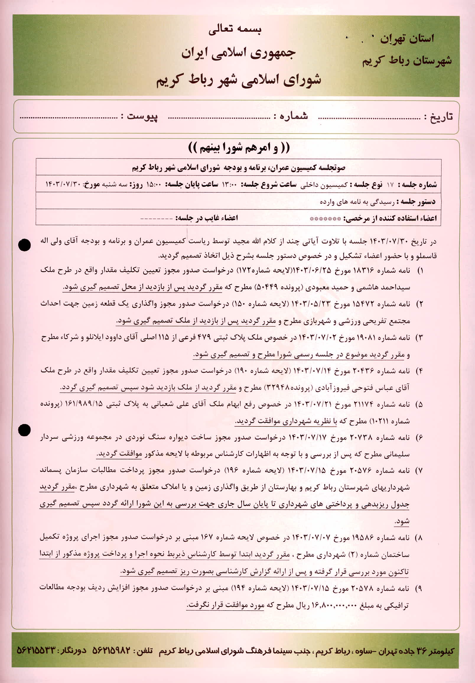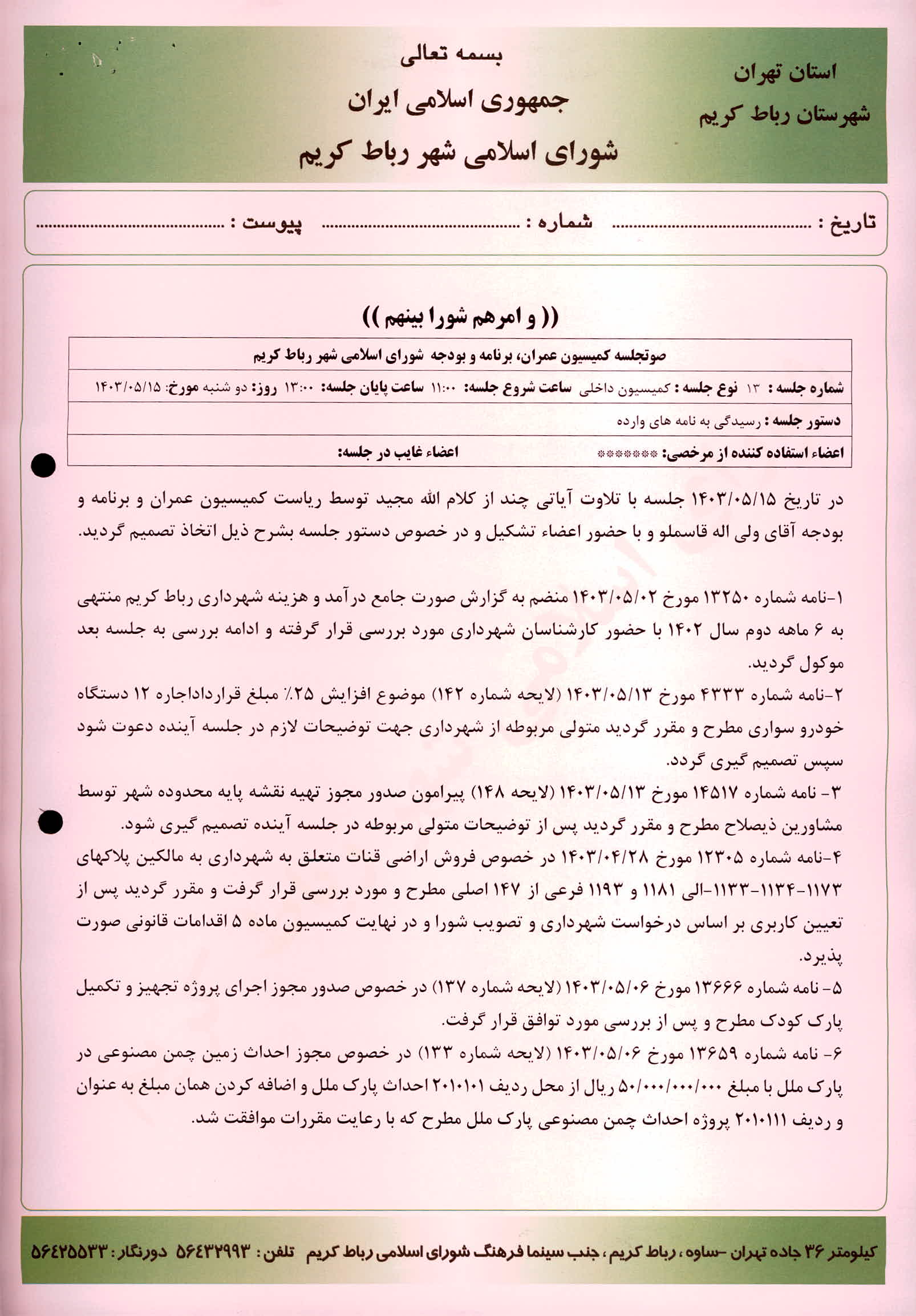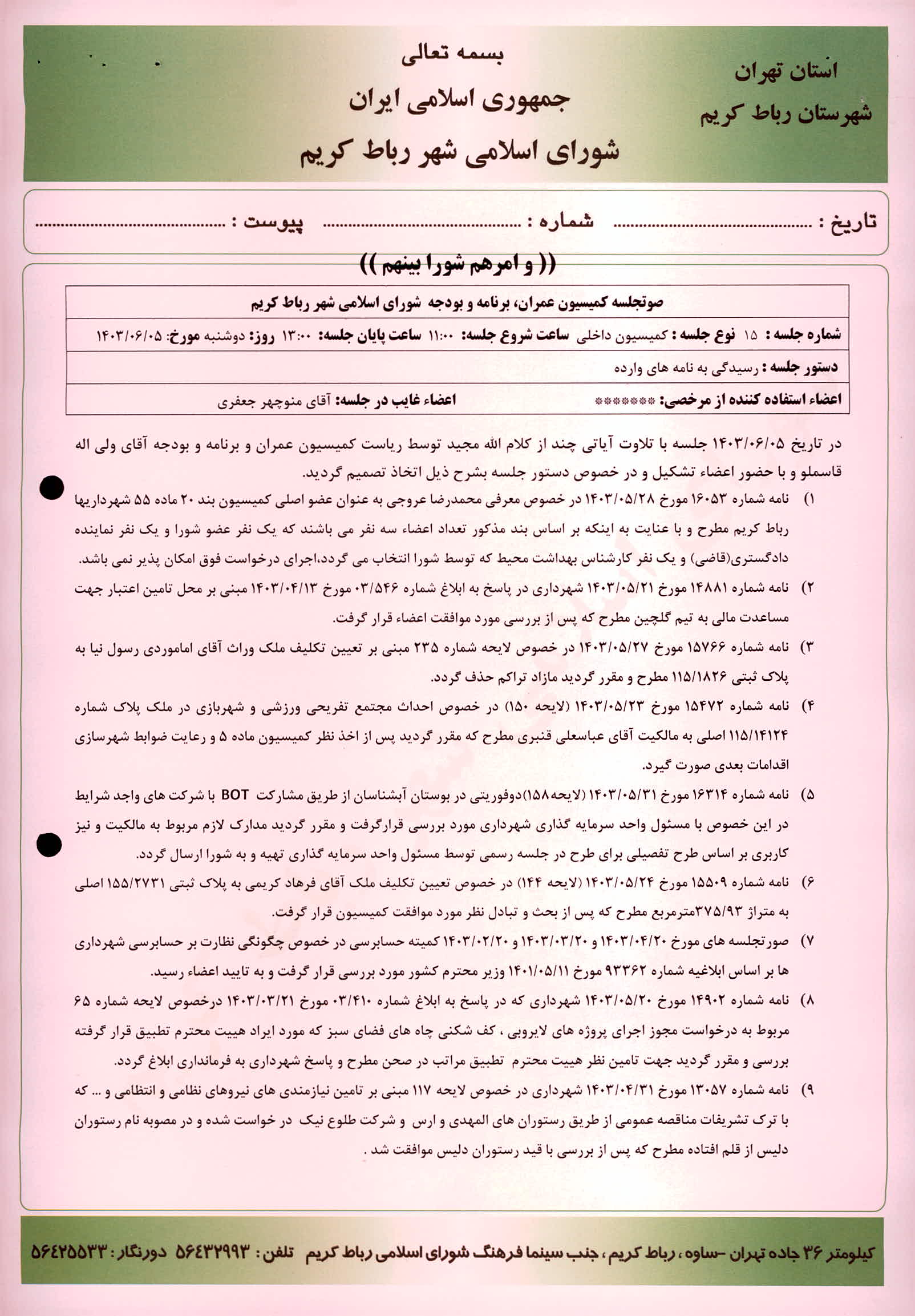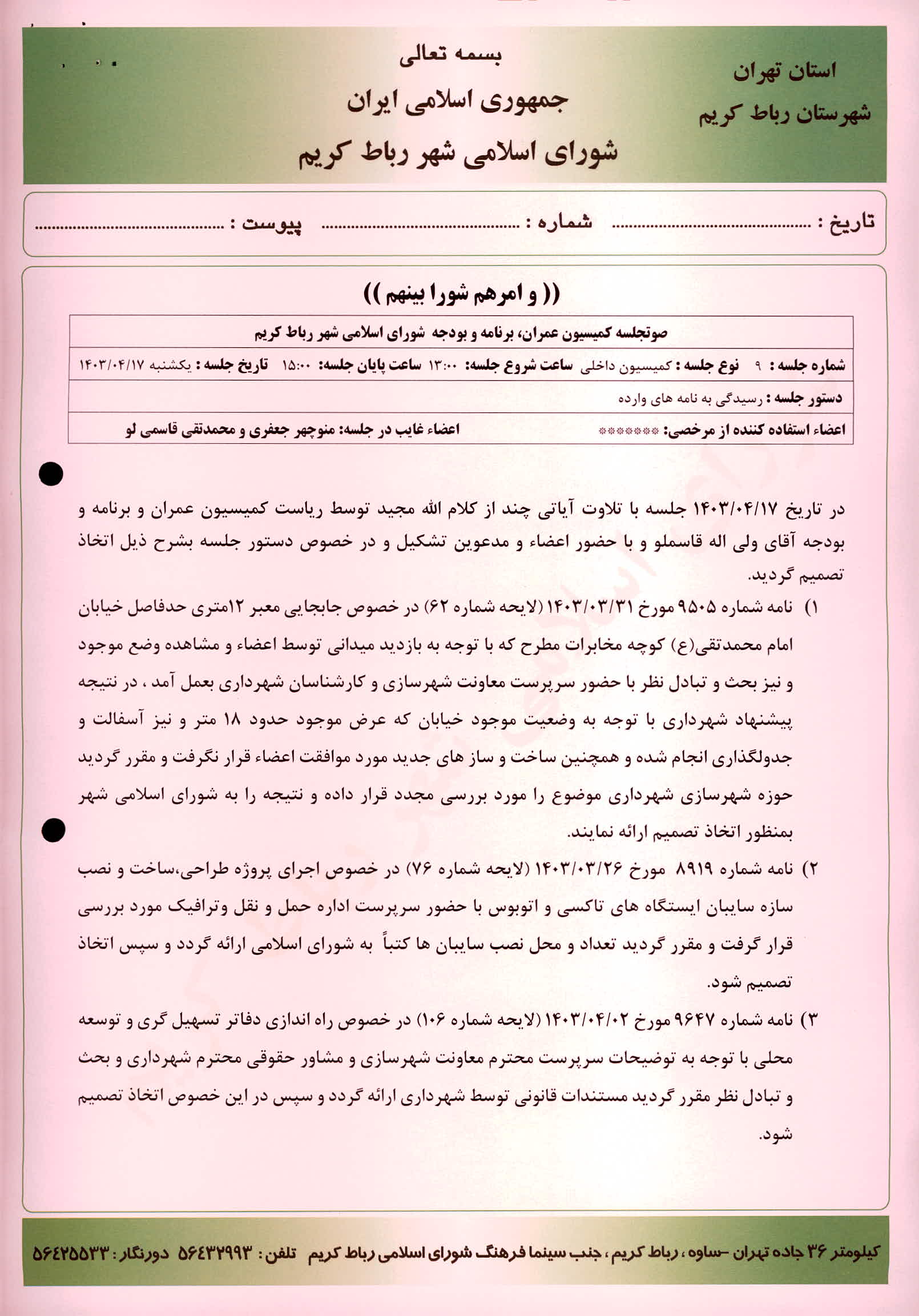 طرح تفصیلی شهر رباط کریم-مصوب سال 1396
