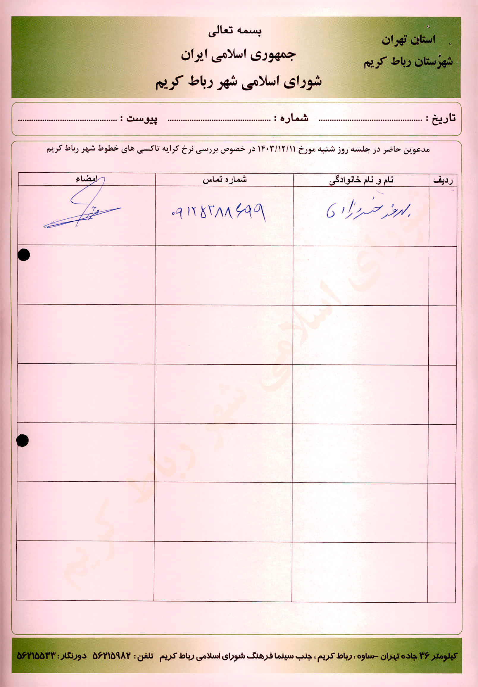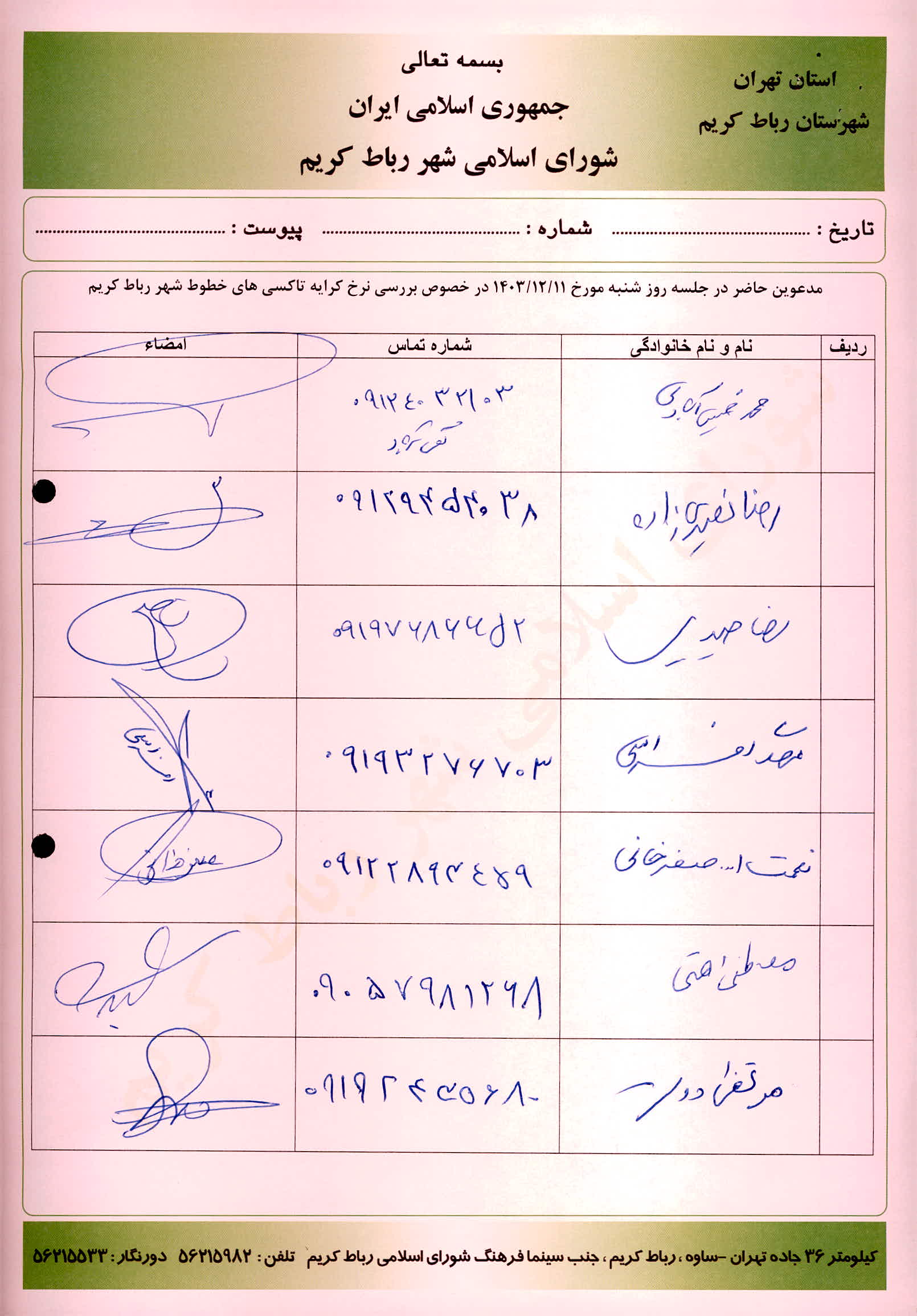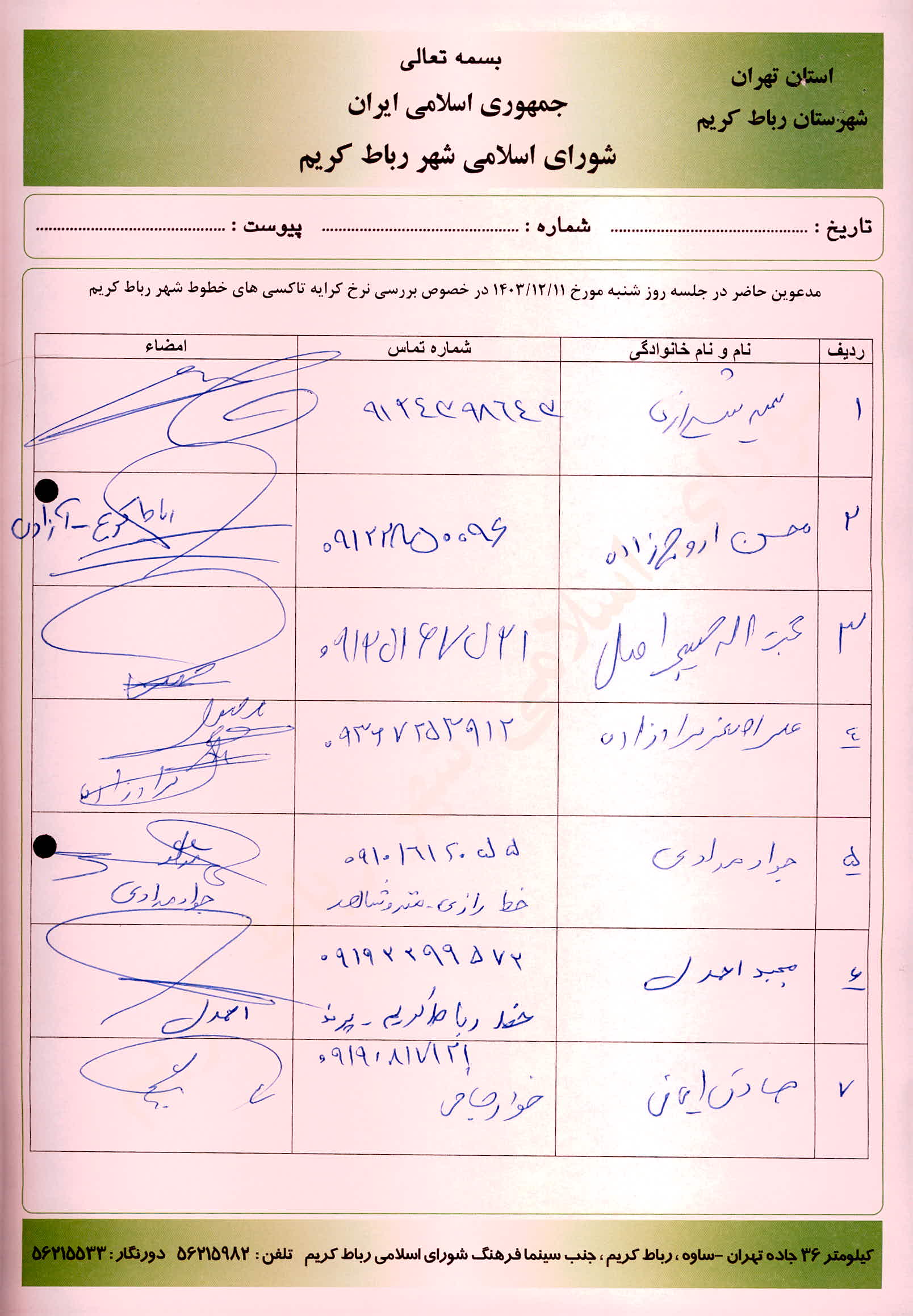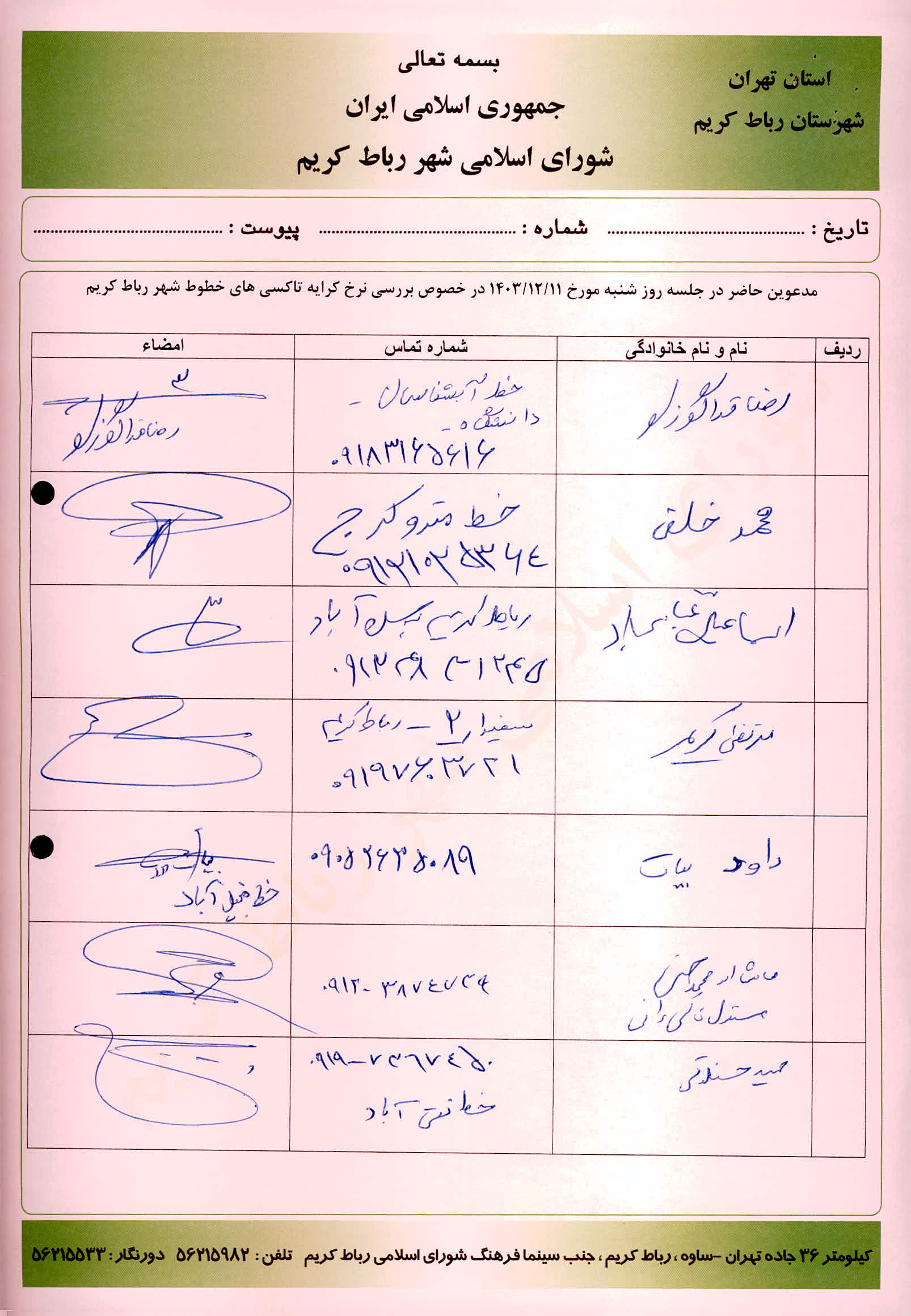 گفتگو در خصوص تعیین نرخ کرایه های مصوب سال 1404 با حضور رئیس سازمان حمل و نقل شهرداری رباط کریم و جمعی از رانندگان تاکسی و اتوبوس