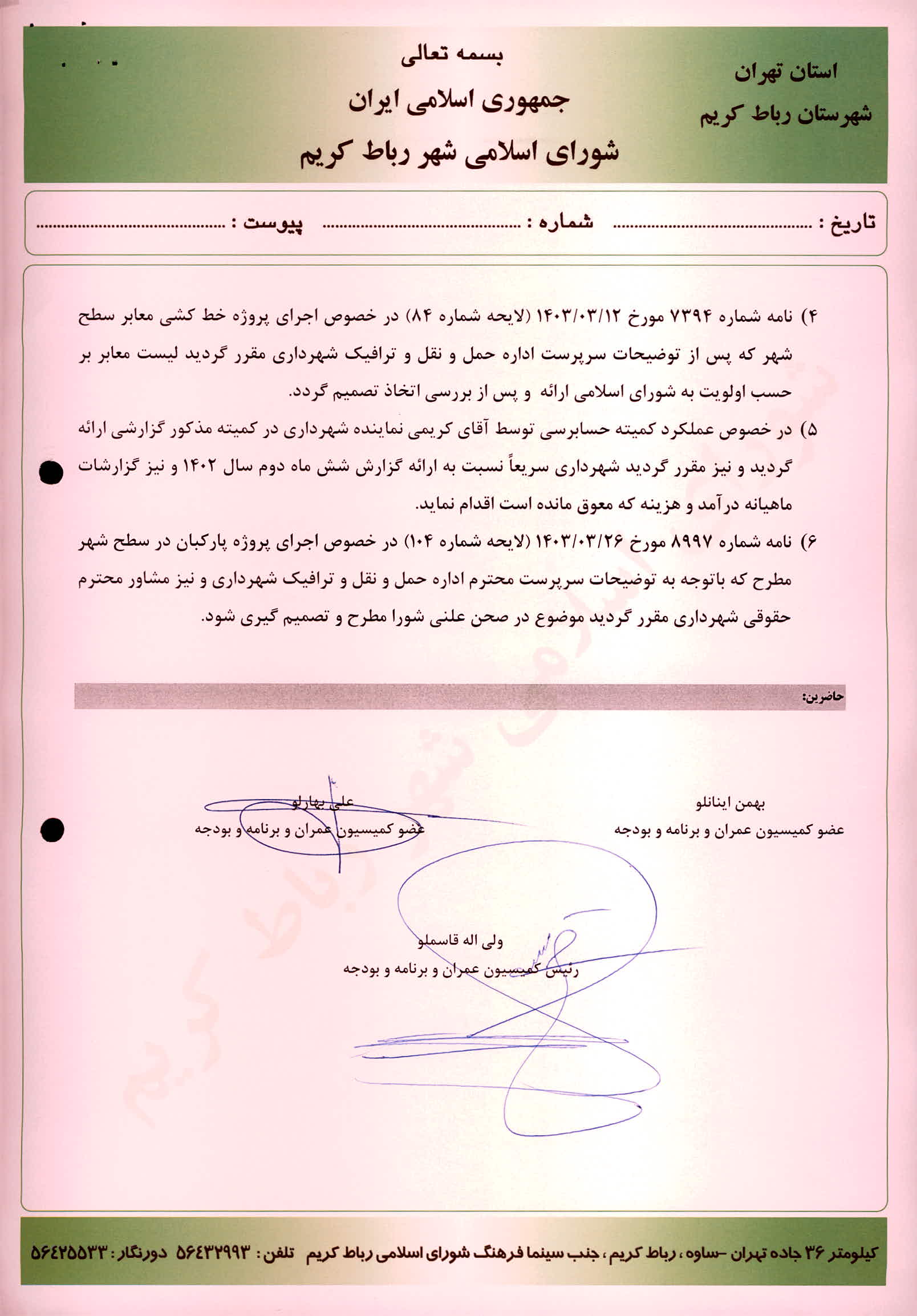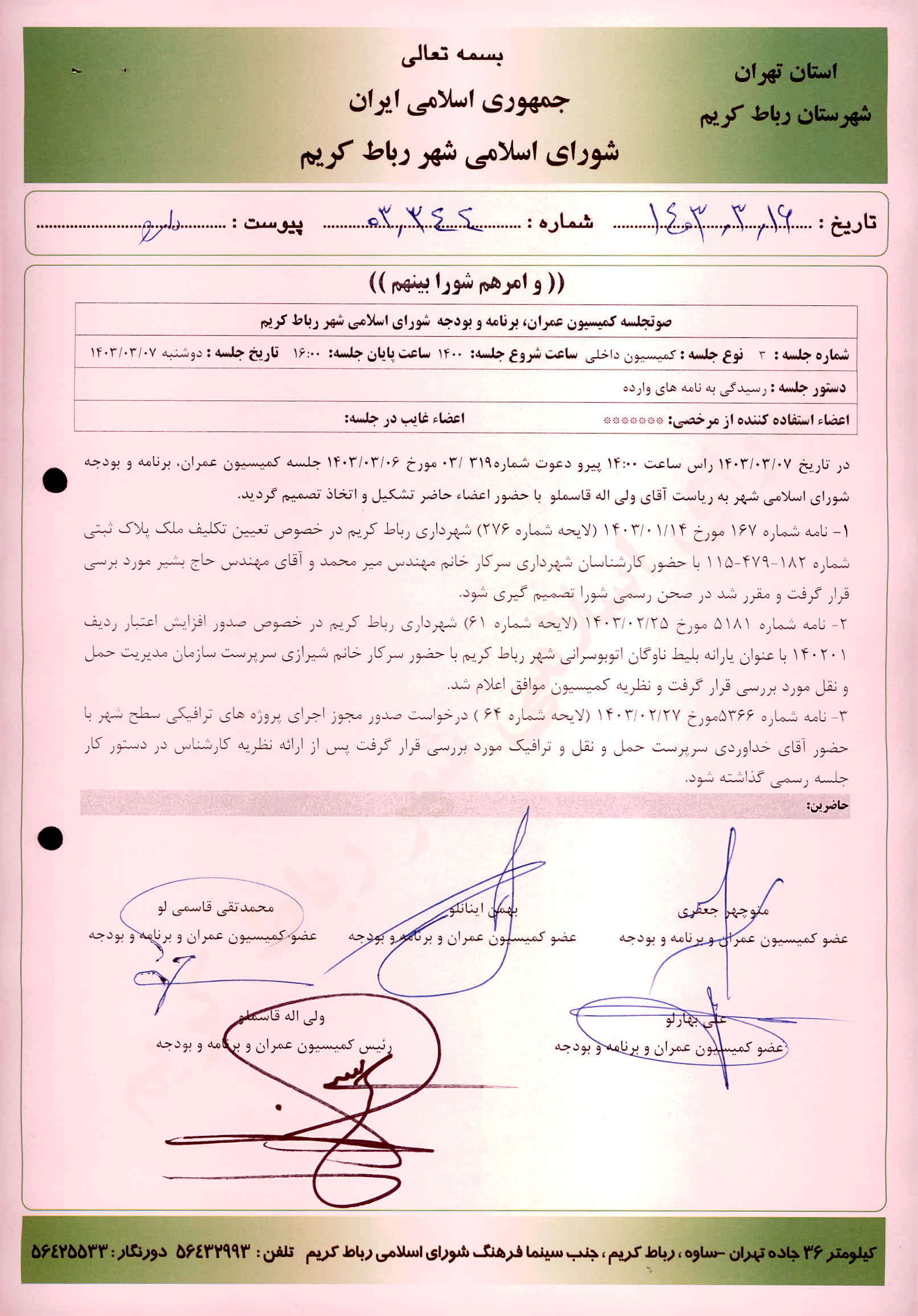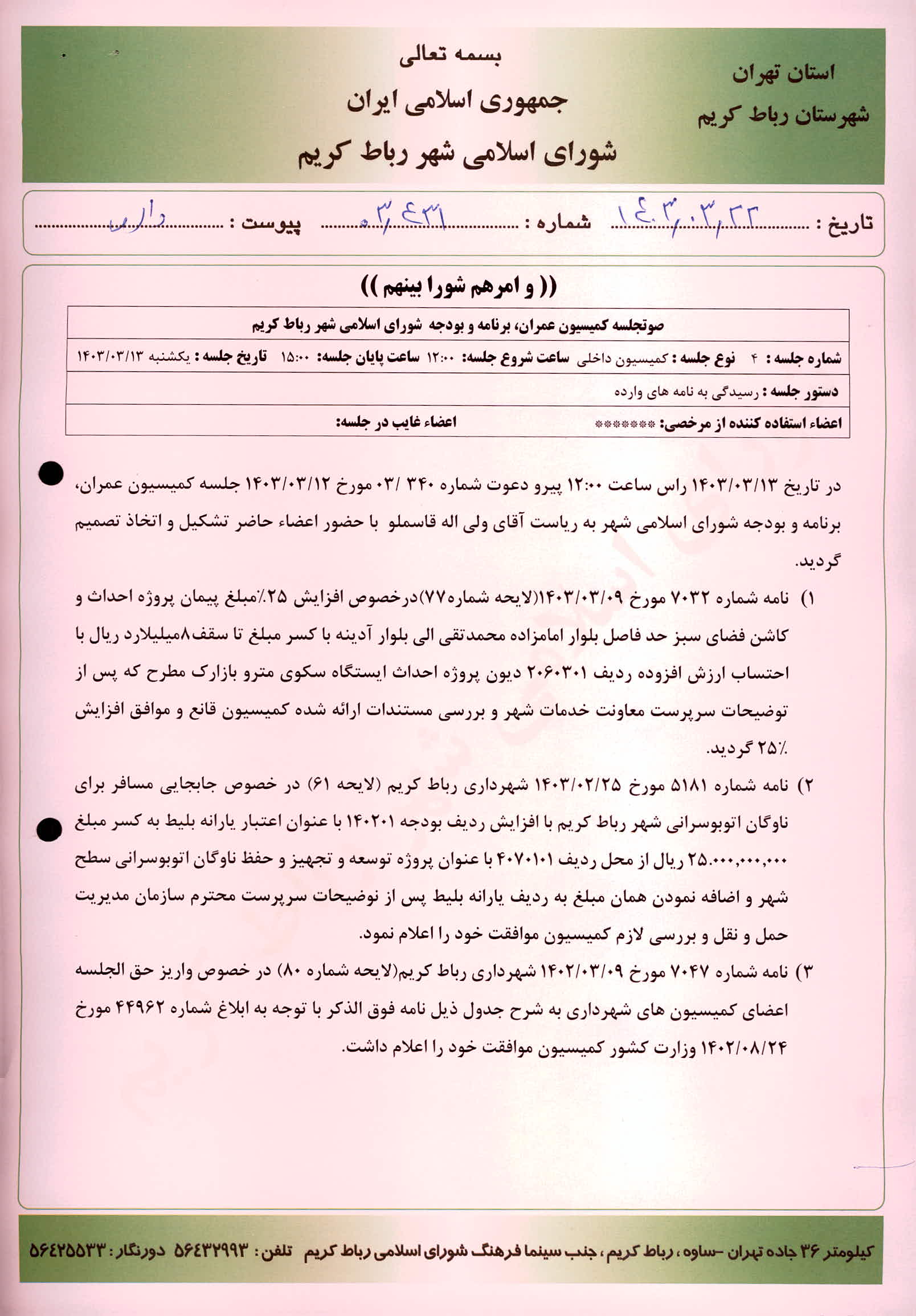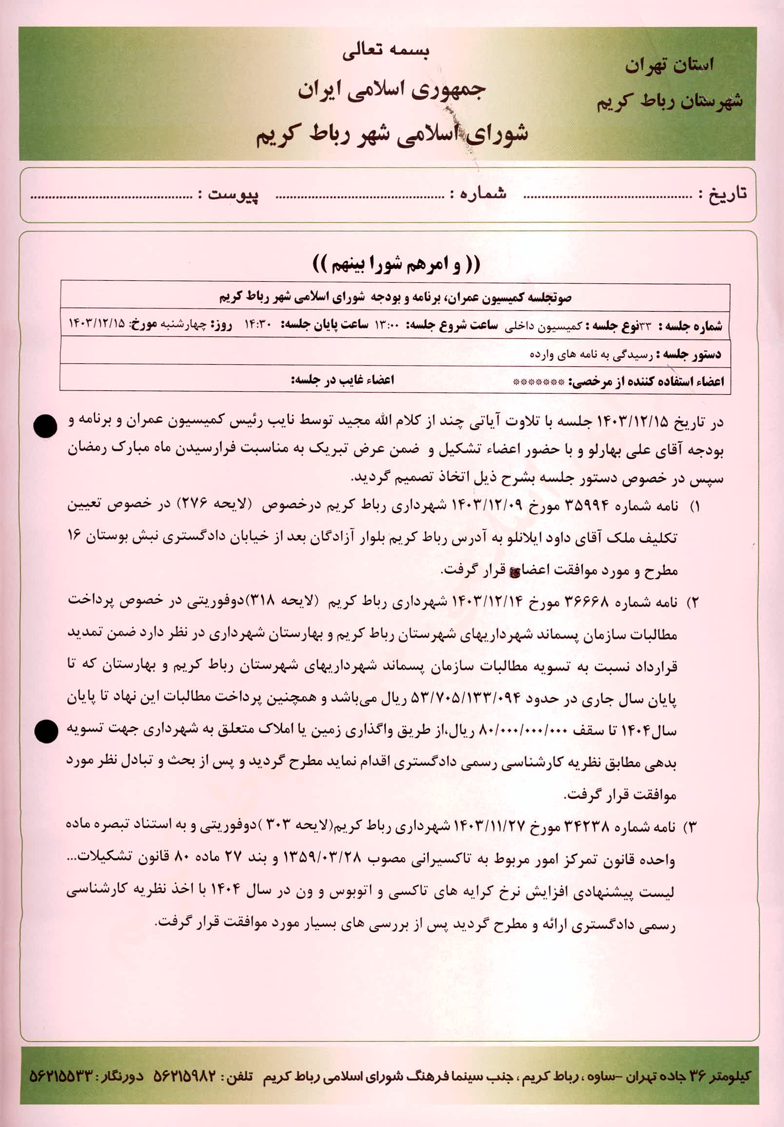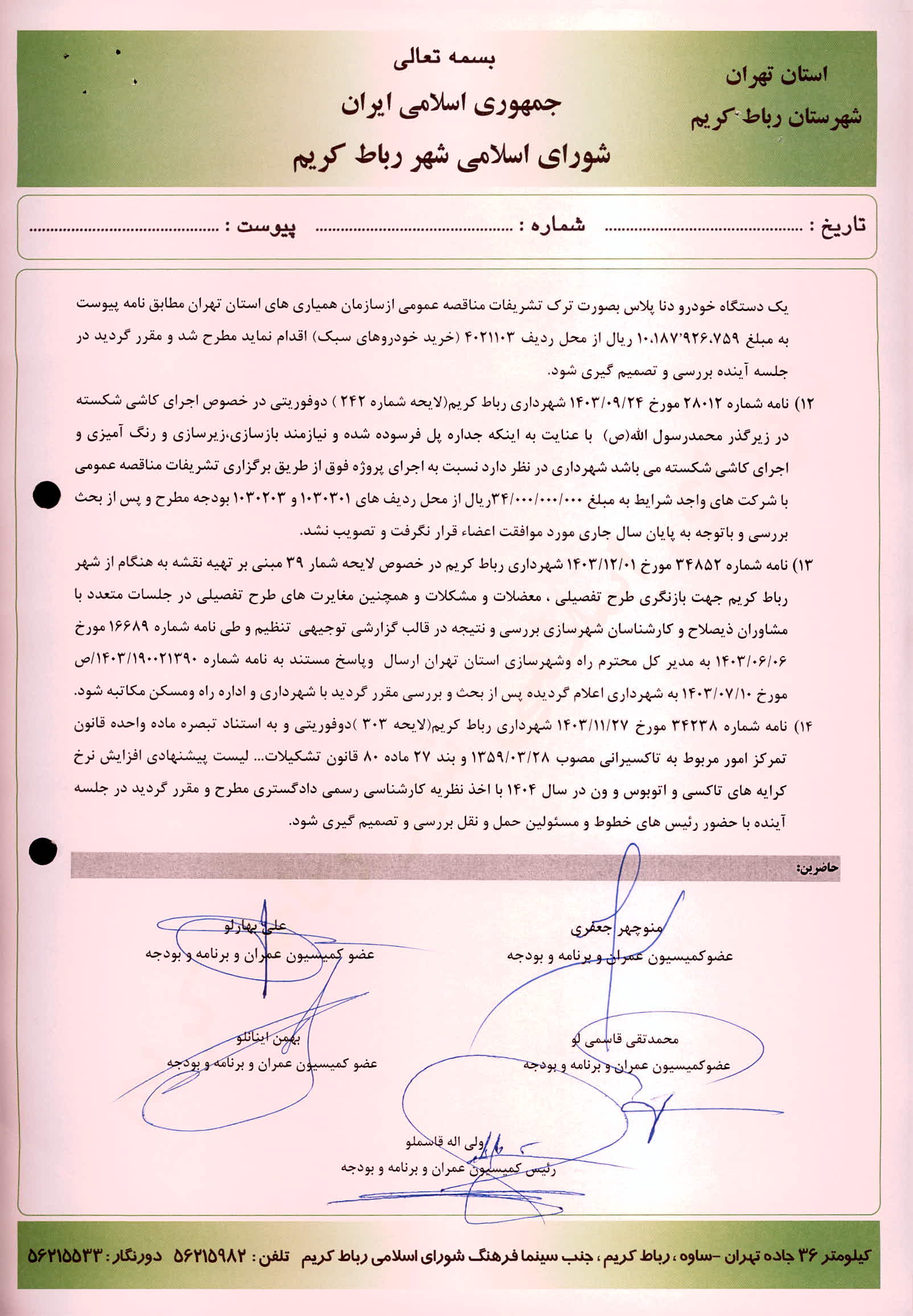 گفتگو در خصوص تعیین نرخ کرایه های مصوب سال 1404 با حضور رئیس سازمان حمل و نقل شهرداری رباط کریم و جمعی از رانندگان تاکسی و اتوبوس