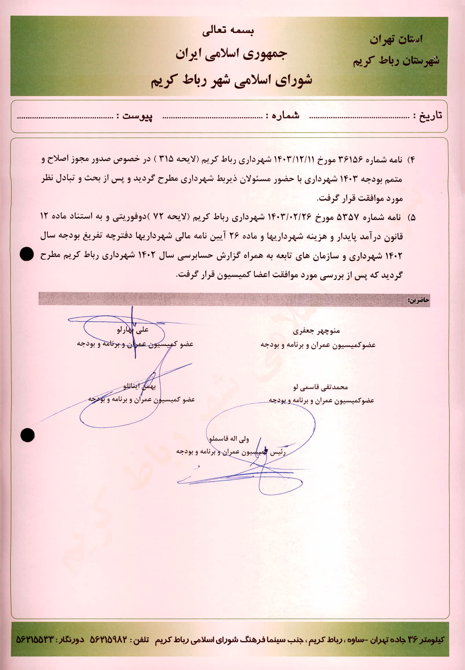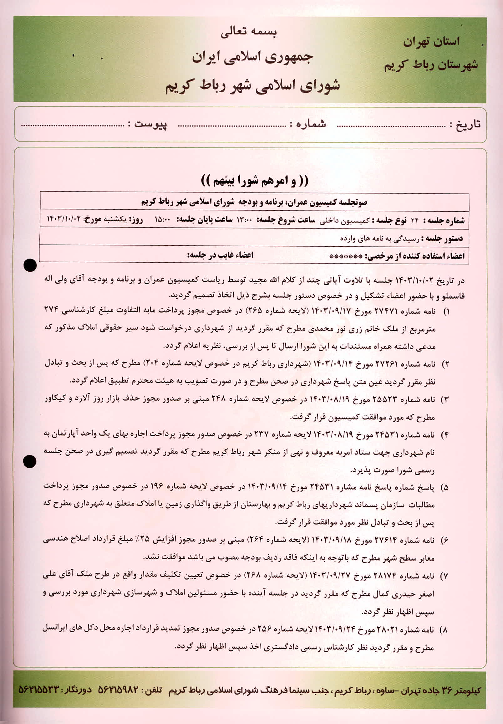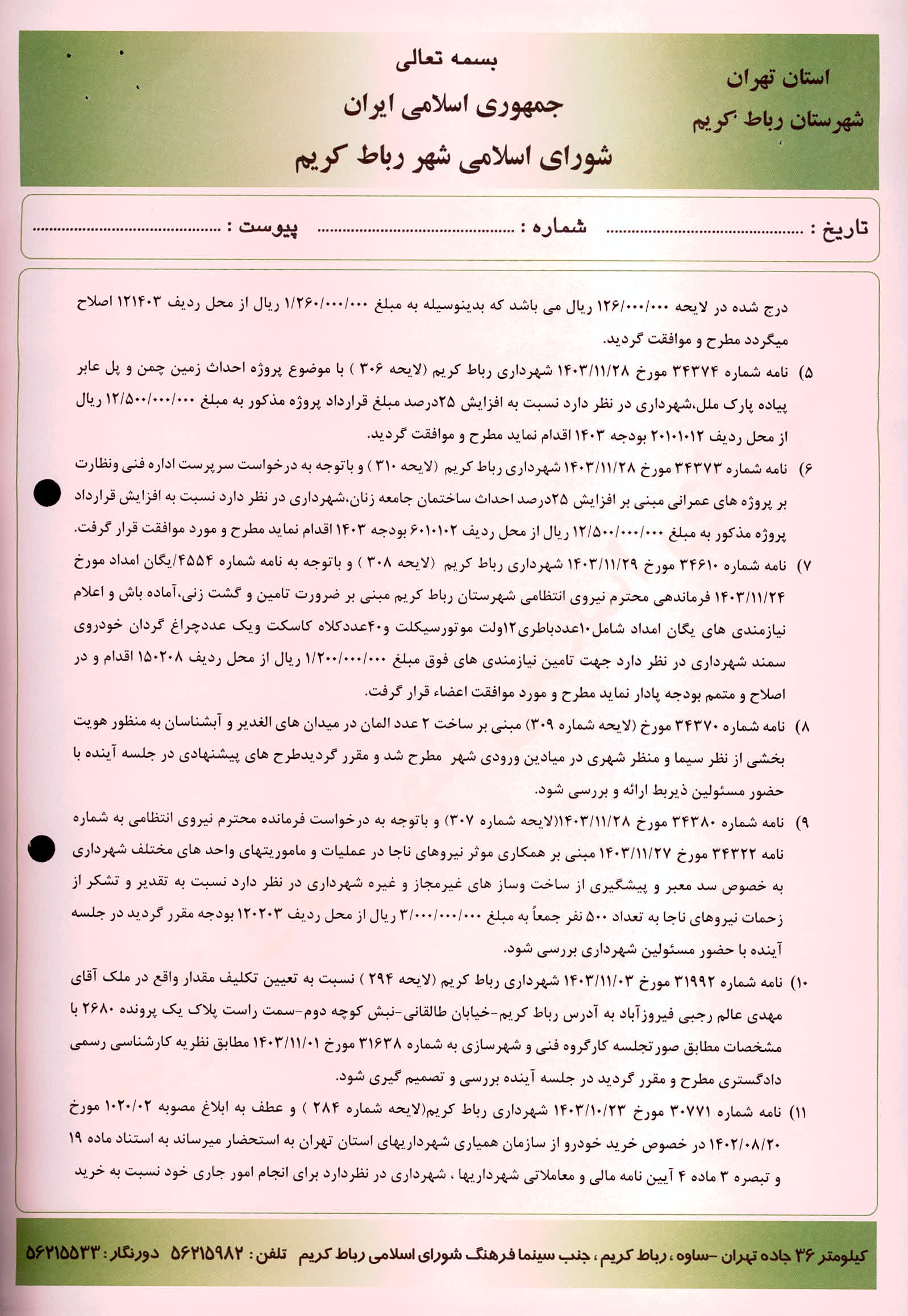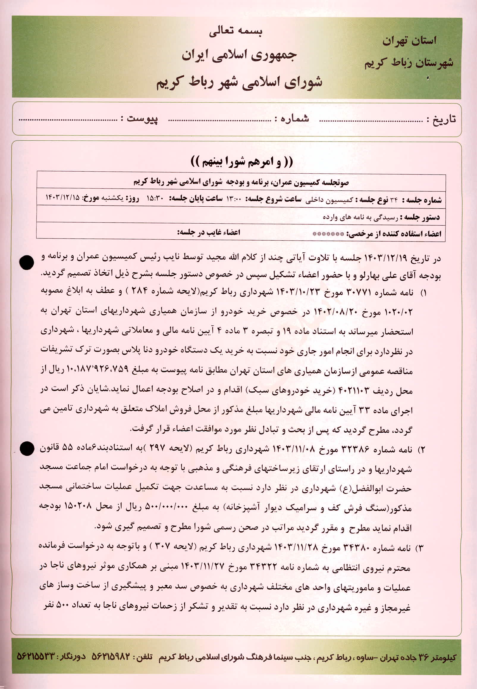 گفتگو در خصوص تعیین نرخ کرایه های مصوب سال 1404 با حضور رئیس سازمان حمل و نقل شهرداری رباط کریم و جمعی از رانندگان تاکسی و اتوبوس